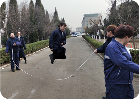 鍛壓機械部為活躍部門女職工業(yè)余生活,讓部門女職工度過一個豐富、充實、快樂的三八婦女節(jié),部門工會人員在車間門口舉行了慶“三八”女職工趣味比賽活動,有跳繩,踢毽子,丟沙包活動,參加人數(shù)有二十多人。