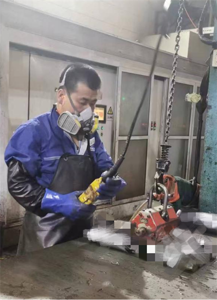銷軸鍍鉻作為銷軸生產(chǎn)中的表面處理工序,在保證發(fā)貨及時率和產(chǎn)品性能質(zhì)量方面起到重要作用。表面加工部鍍鉻生產(chǎn)線由26名員工組成,分兩班生產(chǎn)。因其操作環(huán)境的特殊性,員工們在廠房內(nèi)必須穿戴各種勞動保護用品,如防毒面罩、防護服、橡膠手套、工鞋等。夏季,在溫度高于室外的廠房內(nèi),一線操作者穿戴好防護用品,猶如蒸桑拿般汗如雨下卻沒有人抱怨喊累。 07