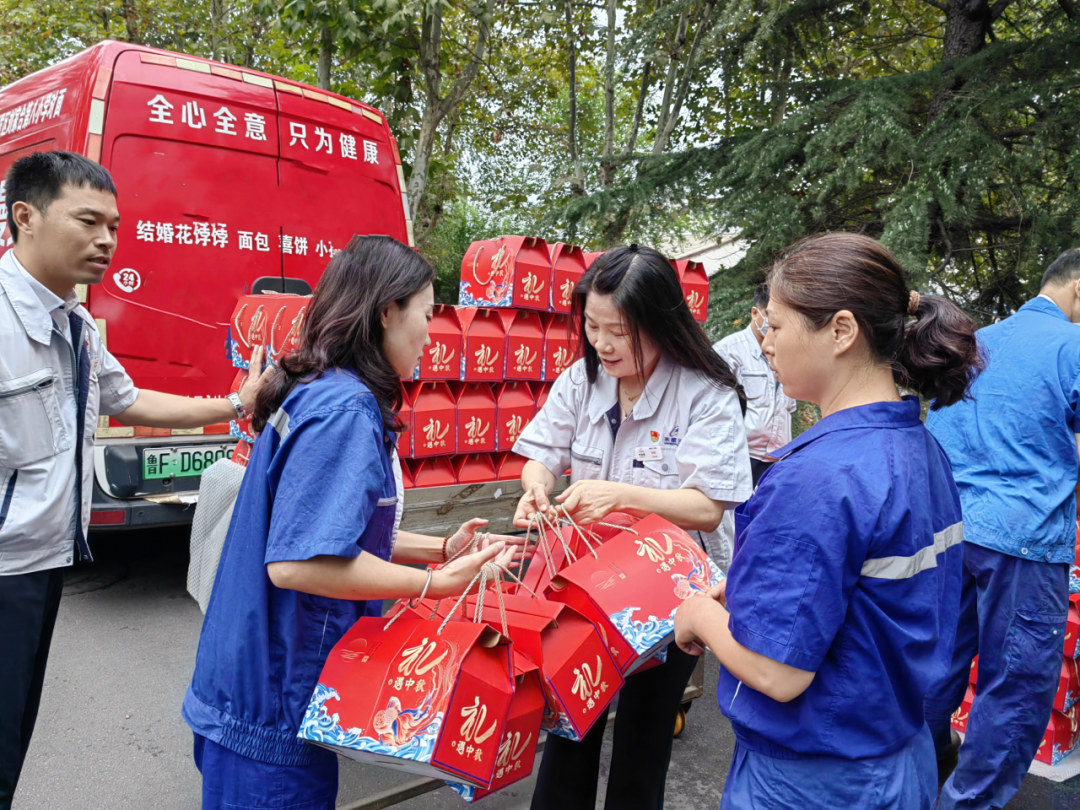 金秋送爽,丹桂飄香。隨著中秋、國慶雙節(jié)的臨近,集團(tuán)公司工會(huì)為全體員工精心挑選了傳統(tǒng)的手工月餅禮盒發(fā)放到各部門,并由各部門分會(huì)下發(fā)到員工手中。