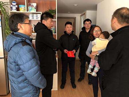 2019年2月1日上午10點,開發(fā)區(qū)總工會領(lǐng)導(dǎo)姜學(xué)軍副部長及副主席鮑杰民一行四人在春節(jié)來臨之際,來到制造三部數(shù)控線困難職工胡留生的家中走訪慰問。