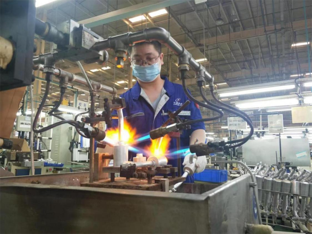 七月,酷暑時節(jié),酷熱難耐。此時,在煙臺東星空調(diào)管路有限公司(YDP)有這么一群人,正默默堅守奮戰(zhàn)在比天氣更為炎熱的工作崗位上,他們就是焊接班的75名員工。汽車空調(diào)管路焊接運用的是火焰釬焊工藝,用2000多℃的高溫火焰進(jìn)行焊接。特點是產(chǎn)熱高、散熱多,尤其是自動焊機,每個工位都裝有6—13個數(shù)量不等的槍頭。每天開班后,三十七個工位同時啟動,三百余條火舌從槍頭噴射而出。頃刻間,焊接班的作業(yè)環(huán)境溫度便能迅速提高。焊接工序在管路加工中是極為重要的環(huán)節(jié),稍不留神就會造成不良返工甚至是廢品。為確保品質(zhì),每次熔接階段都需要工人們近距離觀察焊口狀態(tài),判定是否需要補火或退火。烈焰烤紅了他們的臉龐,汗水浸透了他們的衣裳,額頭的汗珠不時的滾入眼中,但他們也顧不得去擦,全神貫注的注視著焊口,為的是一次性焊出高質(zhì)量的產(chǎn)品。在這樣的環(huán)境下,只消十幾分鐘便會從頭到腳濕透,他們卻毫無怨言,日復(fù)一日地在這個崗位上揮汗如雨、默默堅守。在他們的不懈努力下,上半年焊接班保質(zhì)保量完成了251萬余件系統(tǒng)管的生產(chǎn)任務(wù)。