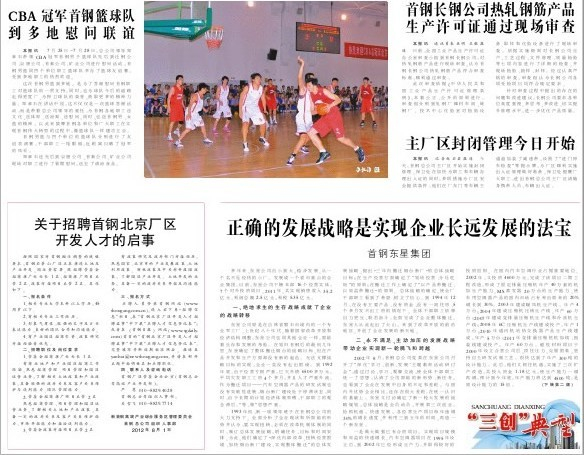 在8月1日發(fā)表的日?qǐng)?bào)(總第6037期)頭版,刊登了題目為《正確的發(fā)展戰(zhàn)略是實(shí)現(xiàn)企業(yè)長(zhǎng)遠(yuǎn)發(fā)展的法寶》的文章,廣泛宣傳、介紹東星集團(tuán)在開(kāi)展“三創(chuàng)”活動(dòng)中的典型經(jīng)驗(yàn),總公司網(wǎng)站同日轉(zhuǎn)載。