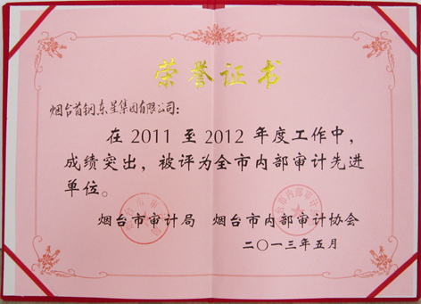 近日,我公司由于內(nèi)審工作成績(jī)突出,被煙臺(tái)市審計(jì)局、煙臺(tái)市內(nèi)部審計(jì)協(xié)會(huì)評(píng)為2011至2012年度全市內(nèi)部審計(jì)先進(jìn)單位。
