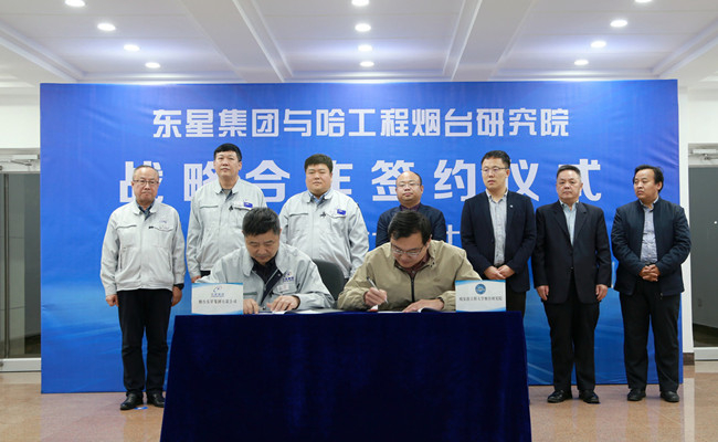 2022年11月21日,東星集團與哈爾濱工程大學(xué)煙臺研究院戰(zhàn)略合作簽約儀式在東星集團總部隆重舉行。哈工程煙臺研究院院長陳海龍、黨委副書記劉楊磊、副院長孫樹政,東星集團董事長于大偉、副總經(jīng)理陳剛、總經(jīng)理助理王建全、總經(jīng)理助理宮明杰等領(lǐng)導(dǎo)出席簽約儀式。