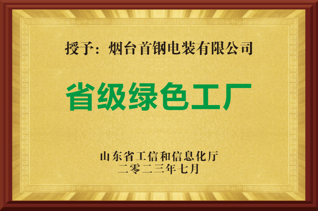 近日,煙臺首鋼電裝有限公司(YSD)榮獲由山東省工信和信息化廳頒發(fā)的“省級綠色工廠”榮譽稱號。