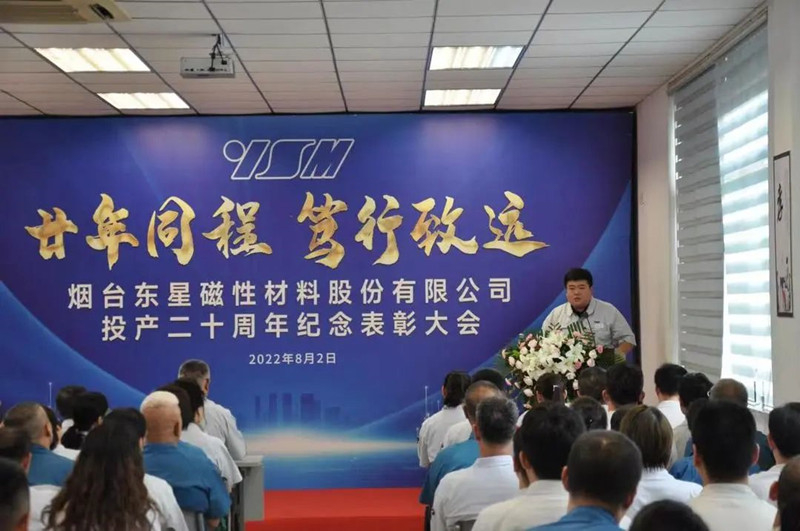 8月2日上午,主題為“廿年同程、篤行致遠(yuǎn)”的煙臺(tái)東星磁性材料股份有限公司(YSM)投產(chǎn)20周年紀(jì)念表彰大會(huì)隆重舉行。東星集團(tuán)董事長、總經(jīng)理于大偉,YSM總經(jīng)理丁開鴻及全體中干、員工代表等130余人參加了會(huì)議。會(huì)議由YSM副總經(jīng)理付連寶主持。